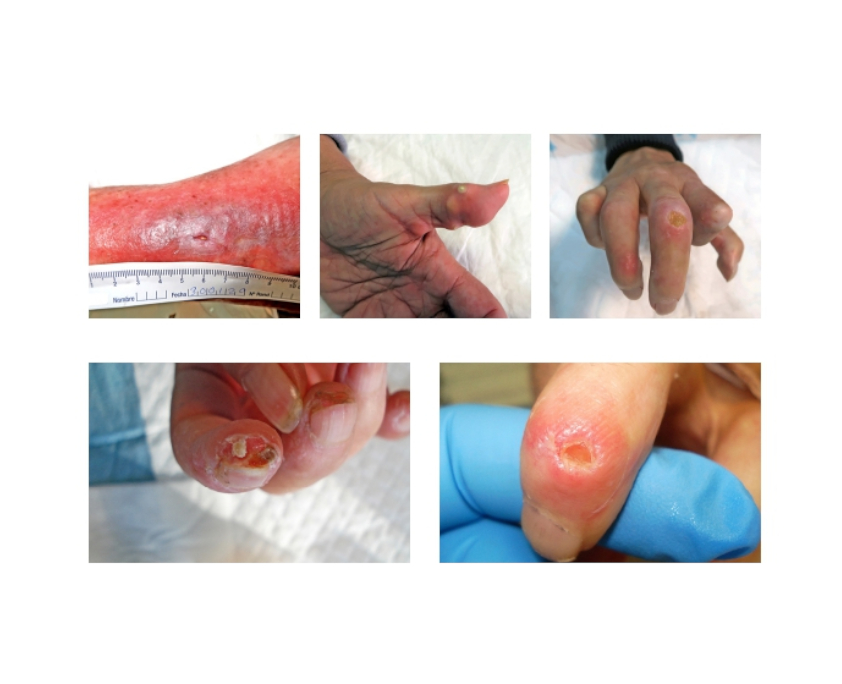 * Úlceras en los dedos de los pies y retraso en la cicatrización de heridas.